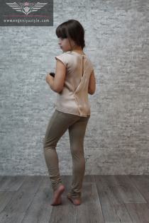 Брюки из трикотажной мягкой замши, с кокеткой и накладными карманами по спинке. Брюки удобные в носке и выглядят очень эффектно. Их можно носить с заправленной блузой и ремешком.